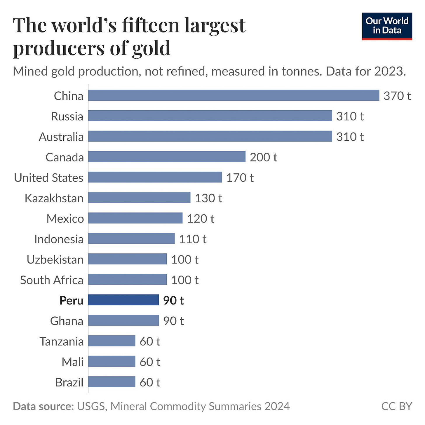Chart of the week: China, Russia, and Australia vastly outperform the U.S. in mined gold production.