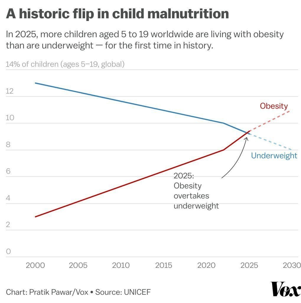 Graph of the week: More children are struggling with obesity than malnutrition for the first time in history